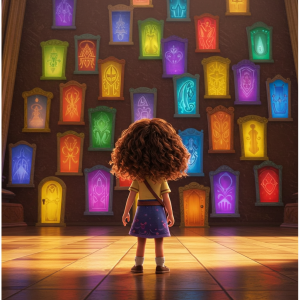 In jener Nacht konnte Lia kaum schlafen. Sie träumte von bunten Fluren, schwebenden Gärten und Türen, die in verschiedene Welten führten.